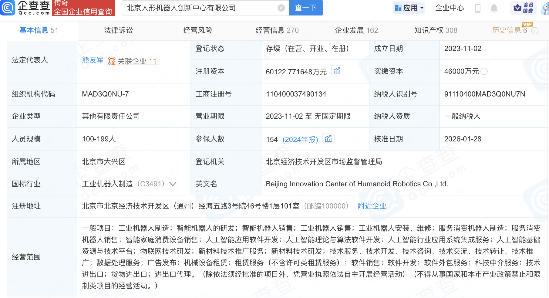 近日,北京人形机器人创新中心有限公司发生工商变更,新增北京市人工智能产业投资基金(有限合伙)等为股东,同时注册资本增至6.01亿元。企查查信息显示,该公司成立于2023年,经营范围包含:工业机器人制造;智能机器人的研发;智能机器人销售;工业机器人销售等。