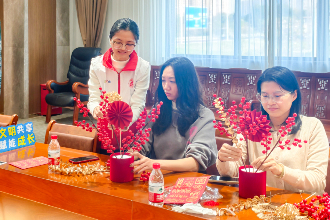 活动设置了新春福桶DIY和插花体验两个环节,让员工在动手实践中感受浓浓年味。工作人员带领员工装点福桶,把对马年的美好期盼与新春祝福融入每一处细节。随后,在花艺老师的悉心指导下,大家精心修剪花枝、搭配花材,打造出各具特色、寓意美好的年花作品,现场暖意融融、喜乐祥和。与此同时,工作人员向员工发放《东莞市文明过节倡议书》,倡导大家春节假期安全出行、文明出游,争做城市文明的传播者和践行者,以实际行动传递文明新风尚。